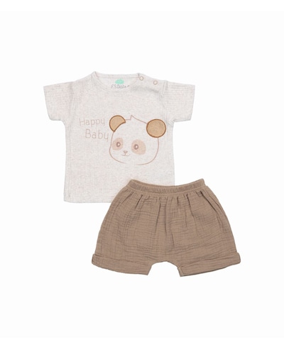 Conjunto de t-shirt e calções em algodão canelado
