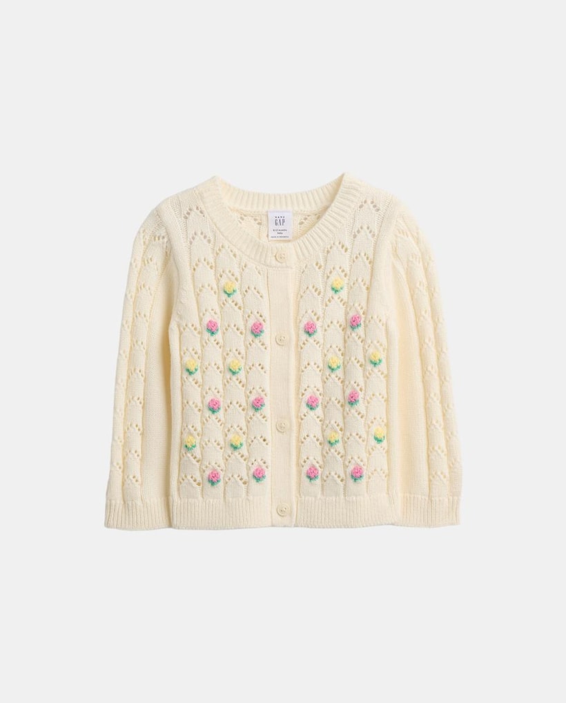 Casaco para Bebé em Tricô de Algodão com Perfurados