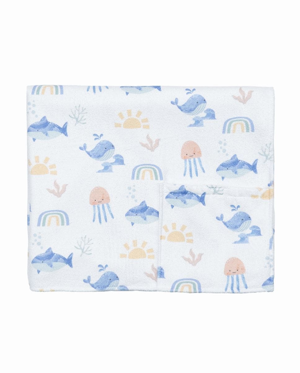 Acessório de Banho para Bebé em Microfibra Estampada com Flores e Ursos