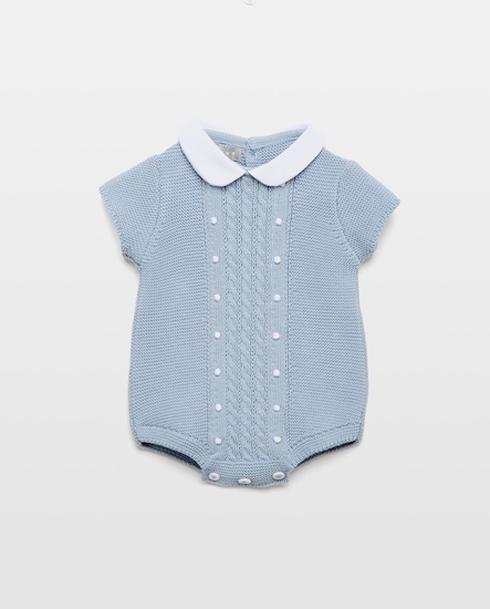 Babygrow de Tricot de Bebé com Gola Clássica e Parte Central na Horizontal com Relevos