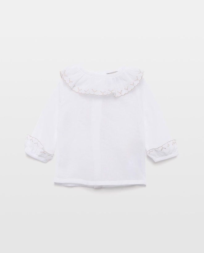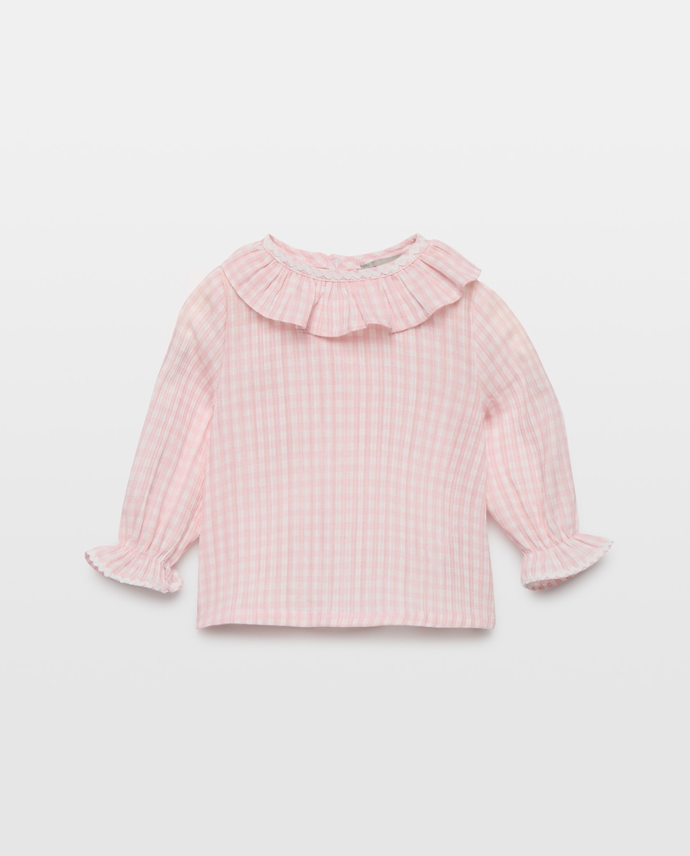 Camisa Básica de Bebé com Manga Comprida com Festão