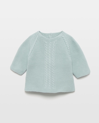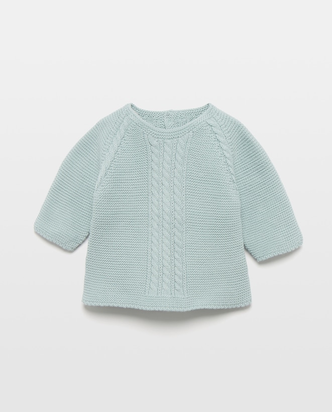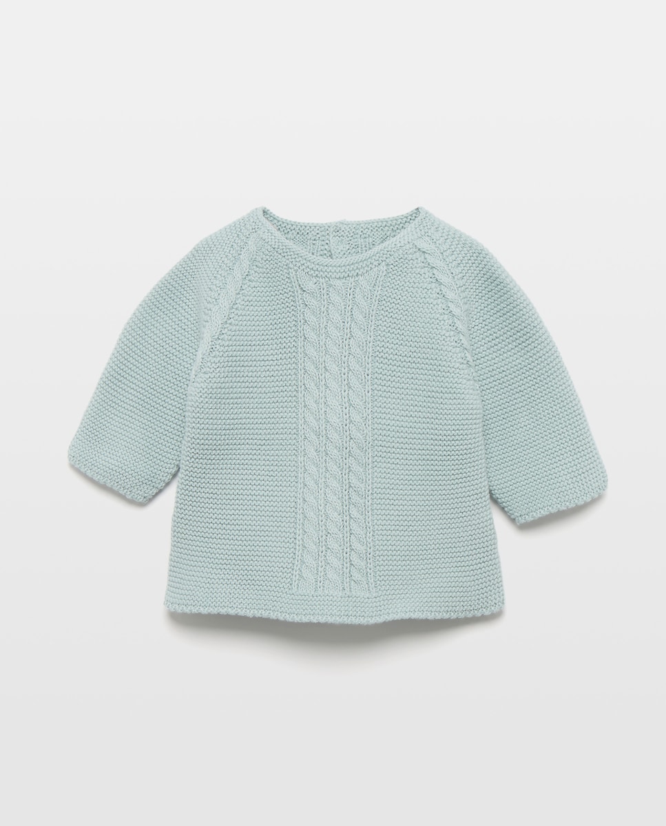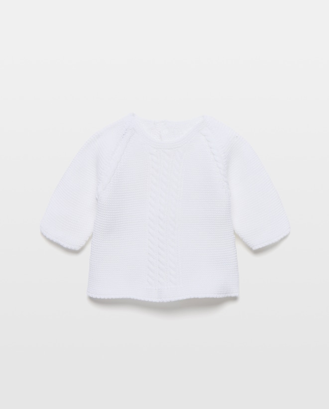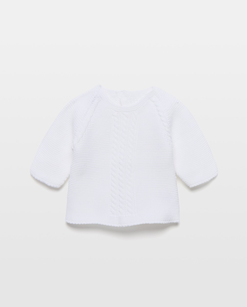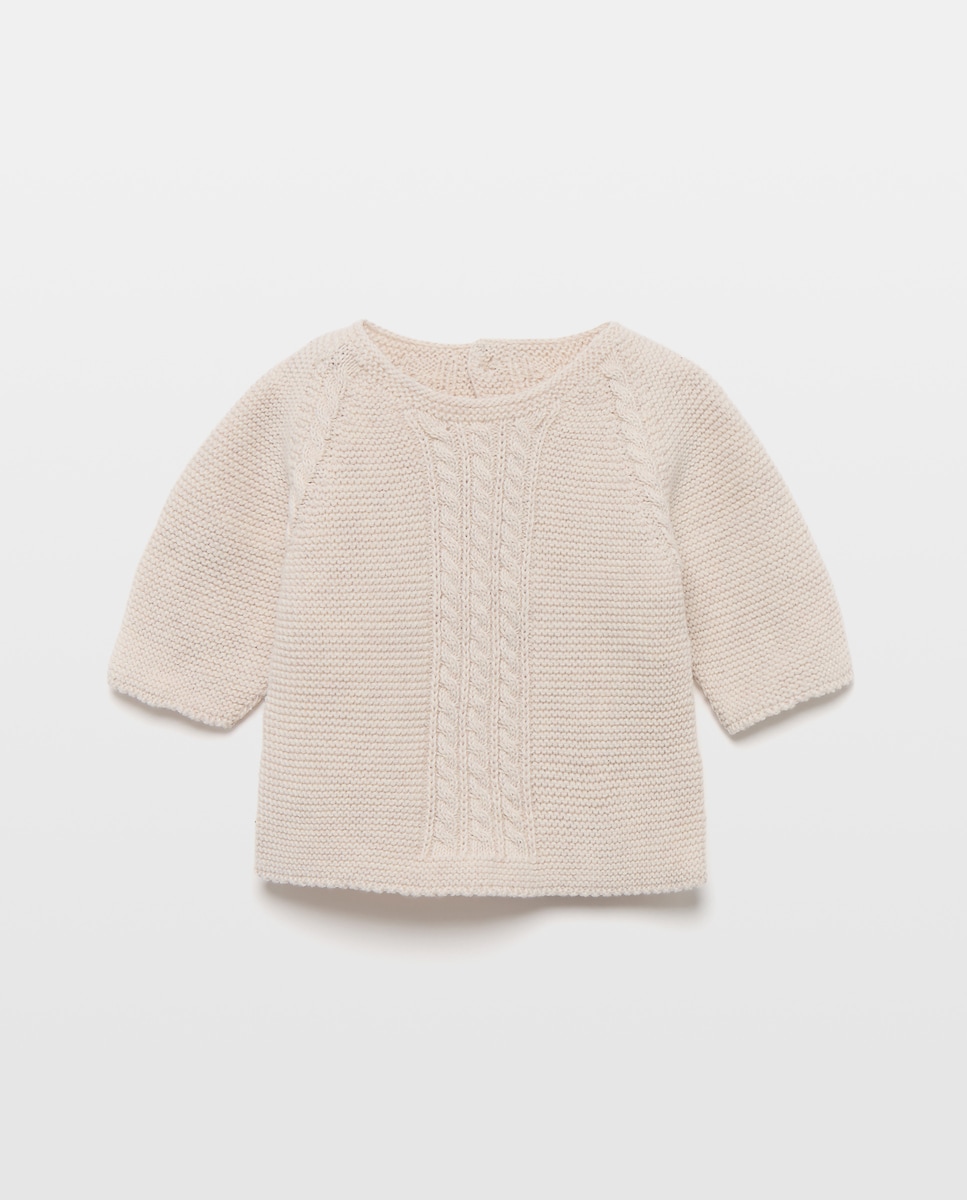 Camisola de Malha com Decote Redondo e Fantasia de Malha do Cabo na Bainha de Bebé