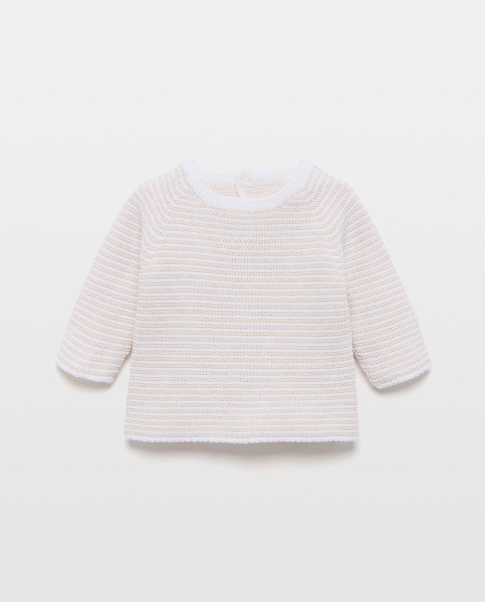 Camisola de Malha de Tricot às Riscas com Gola Redonda de Bebé