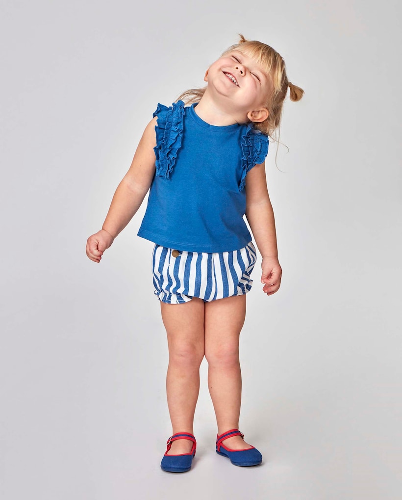 T-shirt sem Mangas de Bebé com Folho e Laço