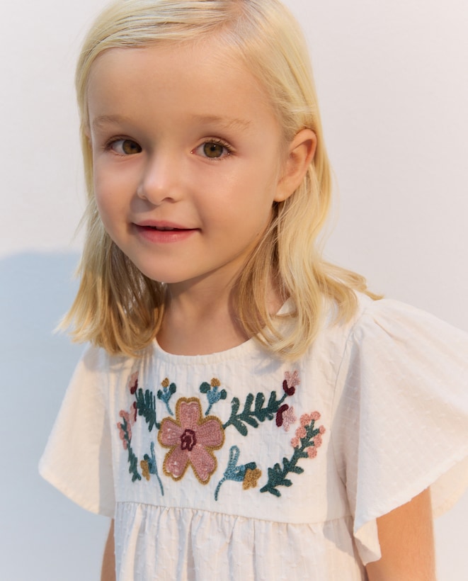 Blusa de Manga Curta com Bordado e Costas Cruzadas