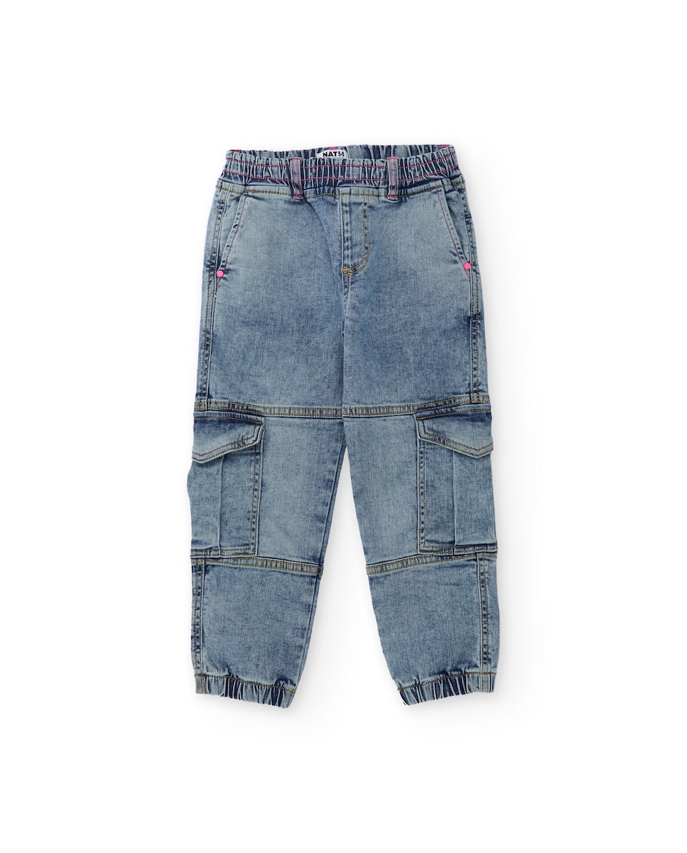 Calças de Plana e Denim com Design Cargo