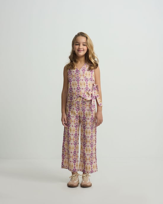 Calças Infantil de Linho com Estampado Ikat em Rosa