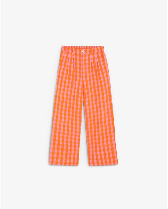Calças Cinco Bolsos Infantil Aos Quadrados Vichy com Cintura Elástica