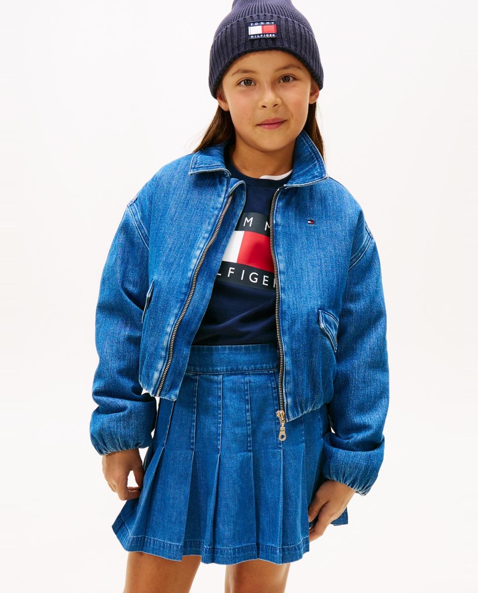 Blusão de ganga com logótipo nas costas