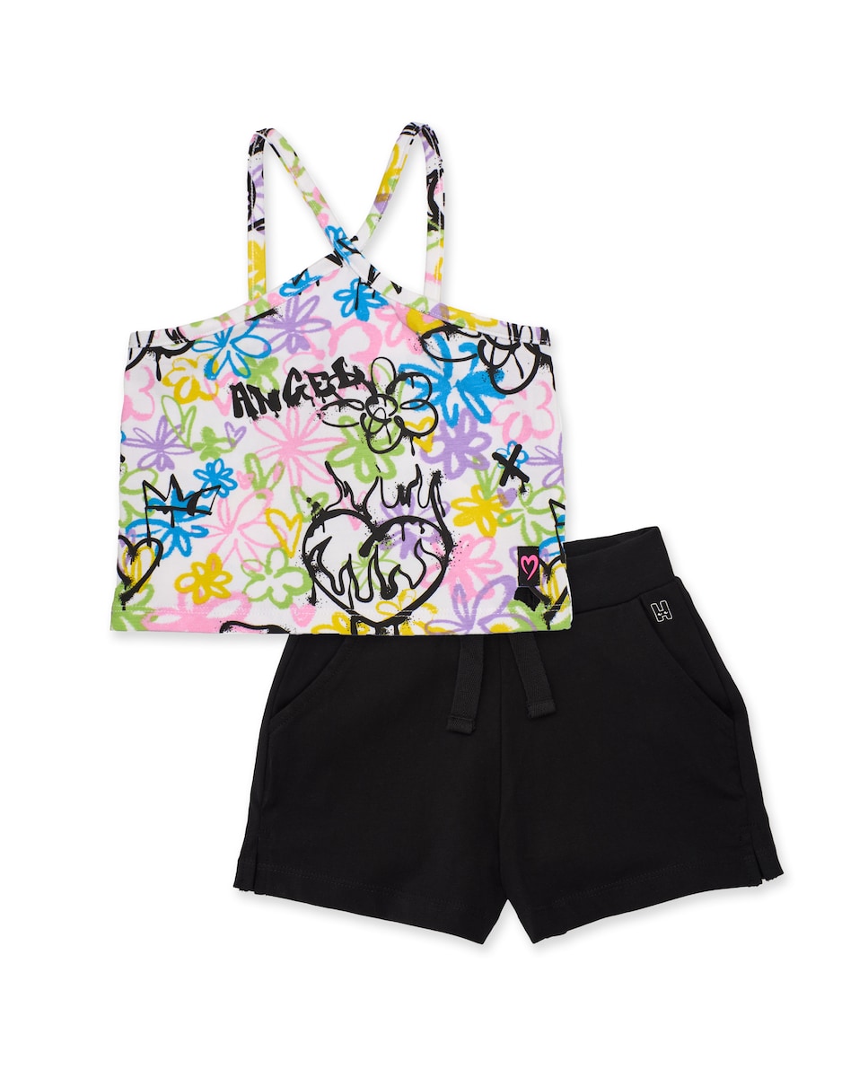 Conjunto Infantil de Malha com Estampado de Hibisco