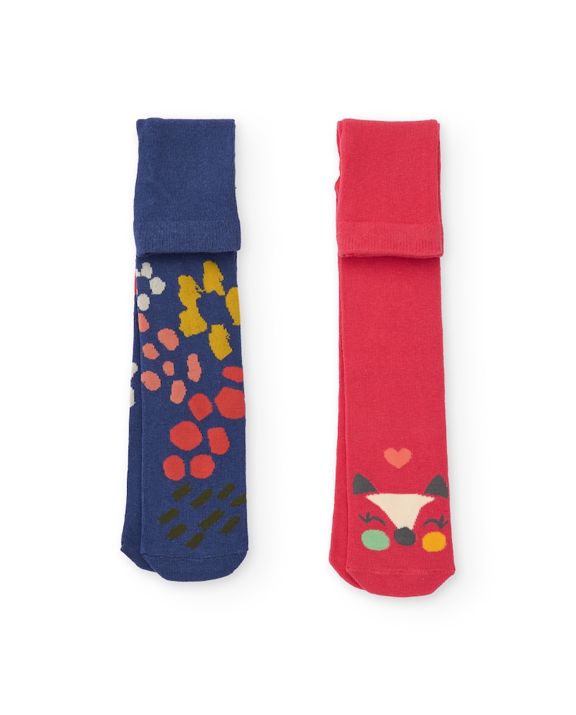 Pack de Collants Infantil em Coral e Azul com Motivos Gráficos