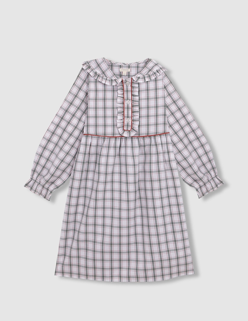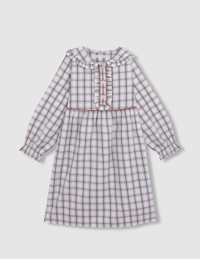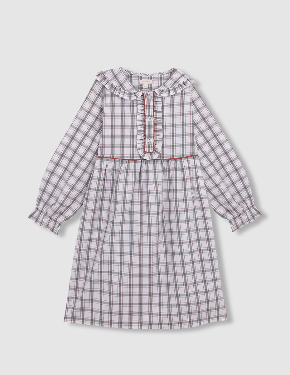 Camisa de Dormir Infantil aos Quadrados com Vivo em Contraste