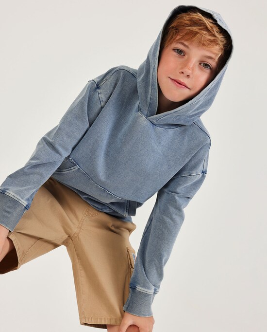 Sweatshirt de Felpa com Capuz e Logótipo à Frente