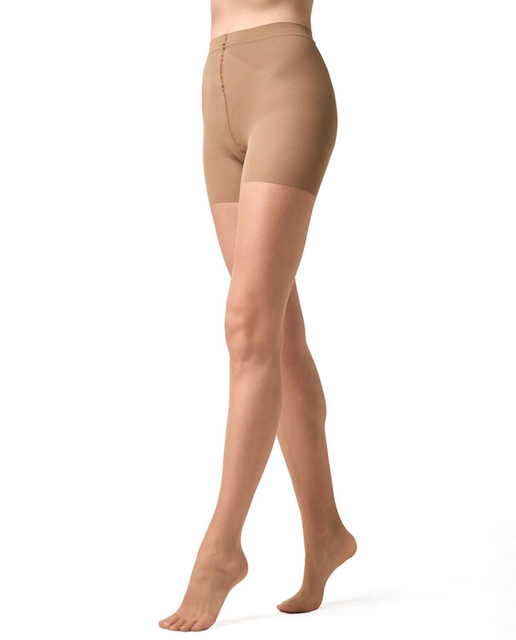 Collants adelgaçantes transparentes de 15 deniers com faixa redutora que realça os glúteos, molda a anca e os músculos e aplana o ventre. Utiliza Lycra Beauty que garante a máxima elasticidade, resistência e conforto. Tem costuras confort, triângulo higiénico e ponta invisível. Por motivos de higiene não são permitidas trocas nem devoluções deste artigo.