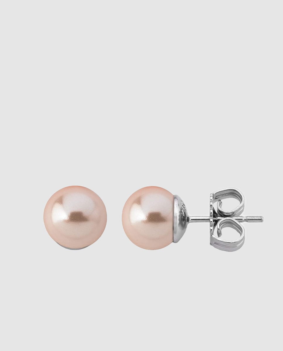 Brincos com pérolas redondas de banhados a prata com 8 mm.
