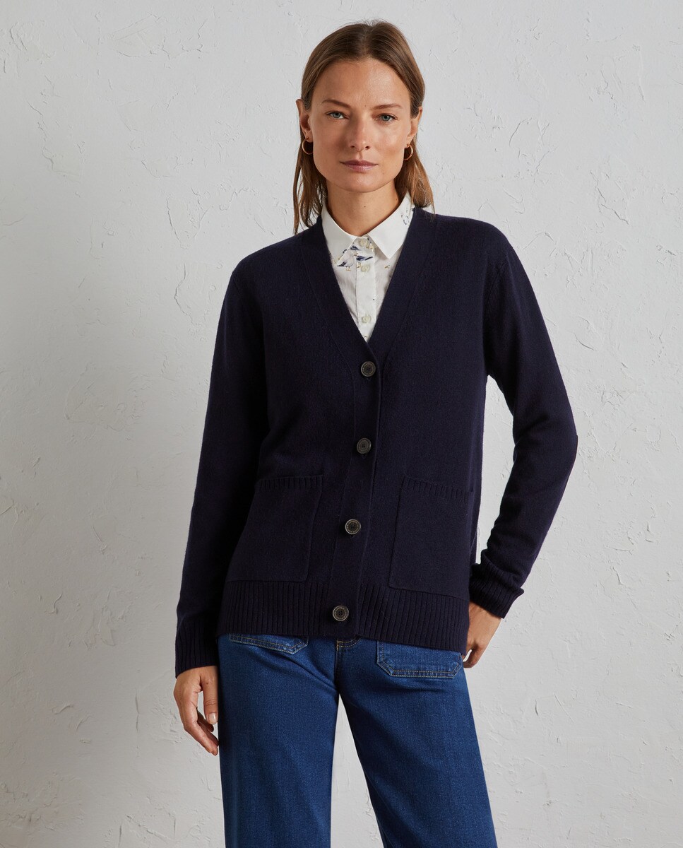 Casaco de Decote em Bico com Botões