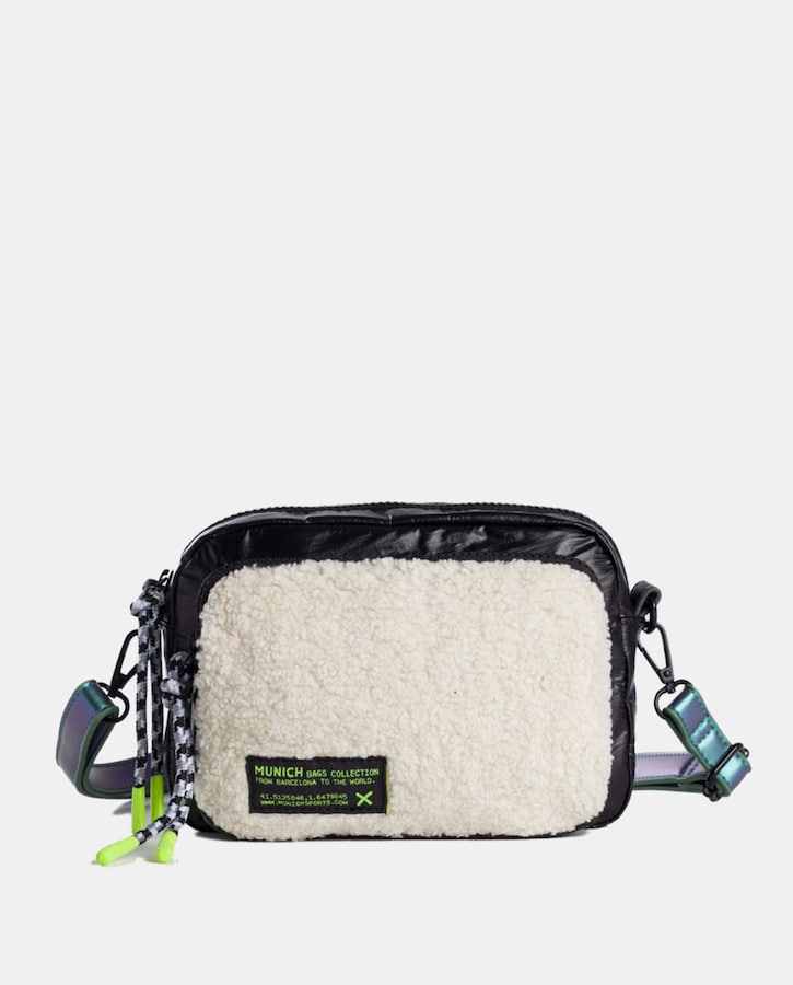 Mala a Tiracolo com Fecho de Correr e em Nylon Combinado - Creme