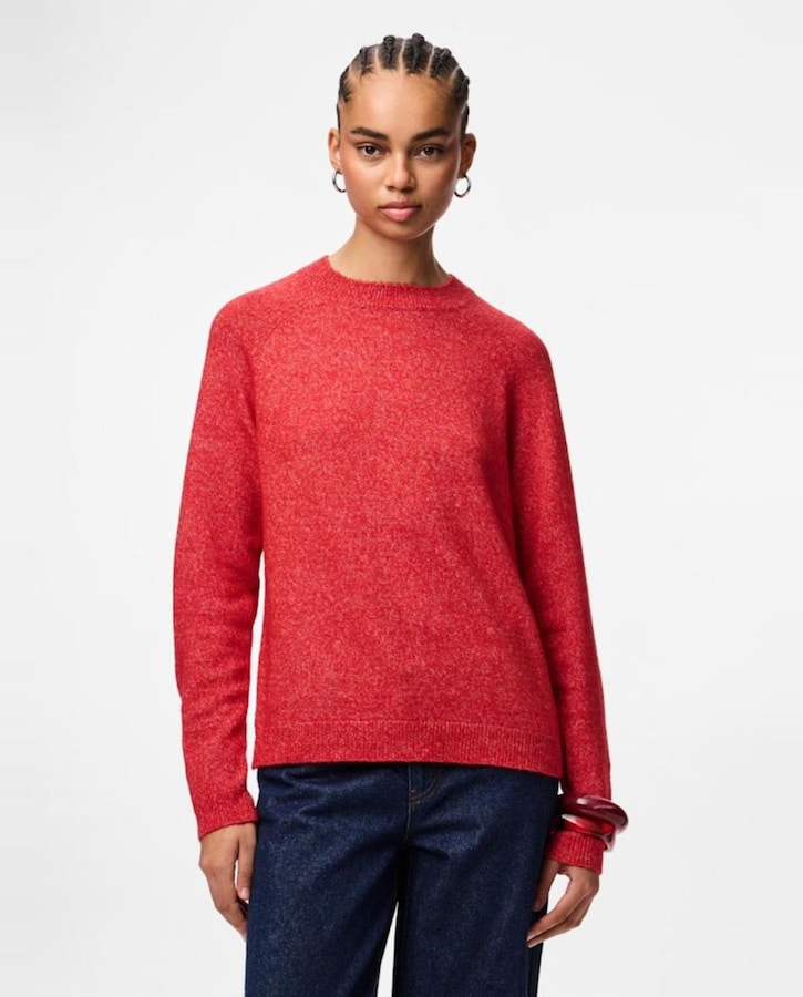 Camisola de malha com decote redondo e manga comprida.