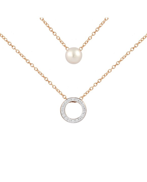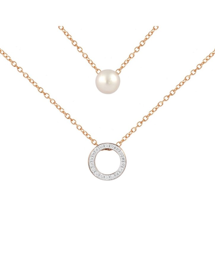Colar em Ouro Rosa com Diamantes Brancos e Pérola