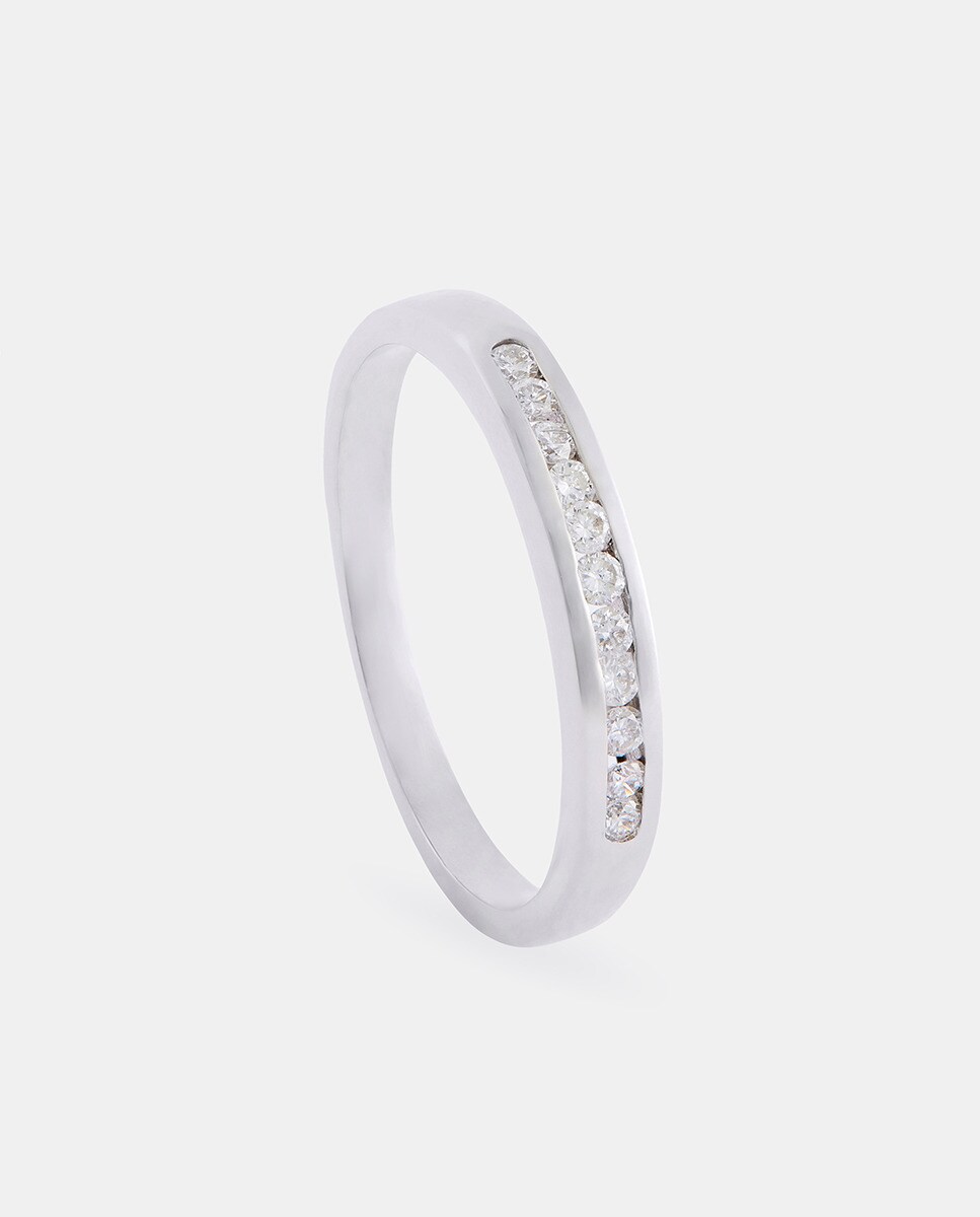 Meia aliança de casamento em ouro branco 750 mil (18 ct.) com diamantes (0,20 ct.).