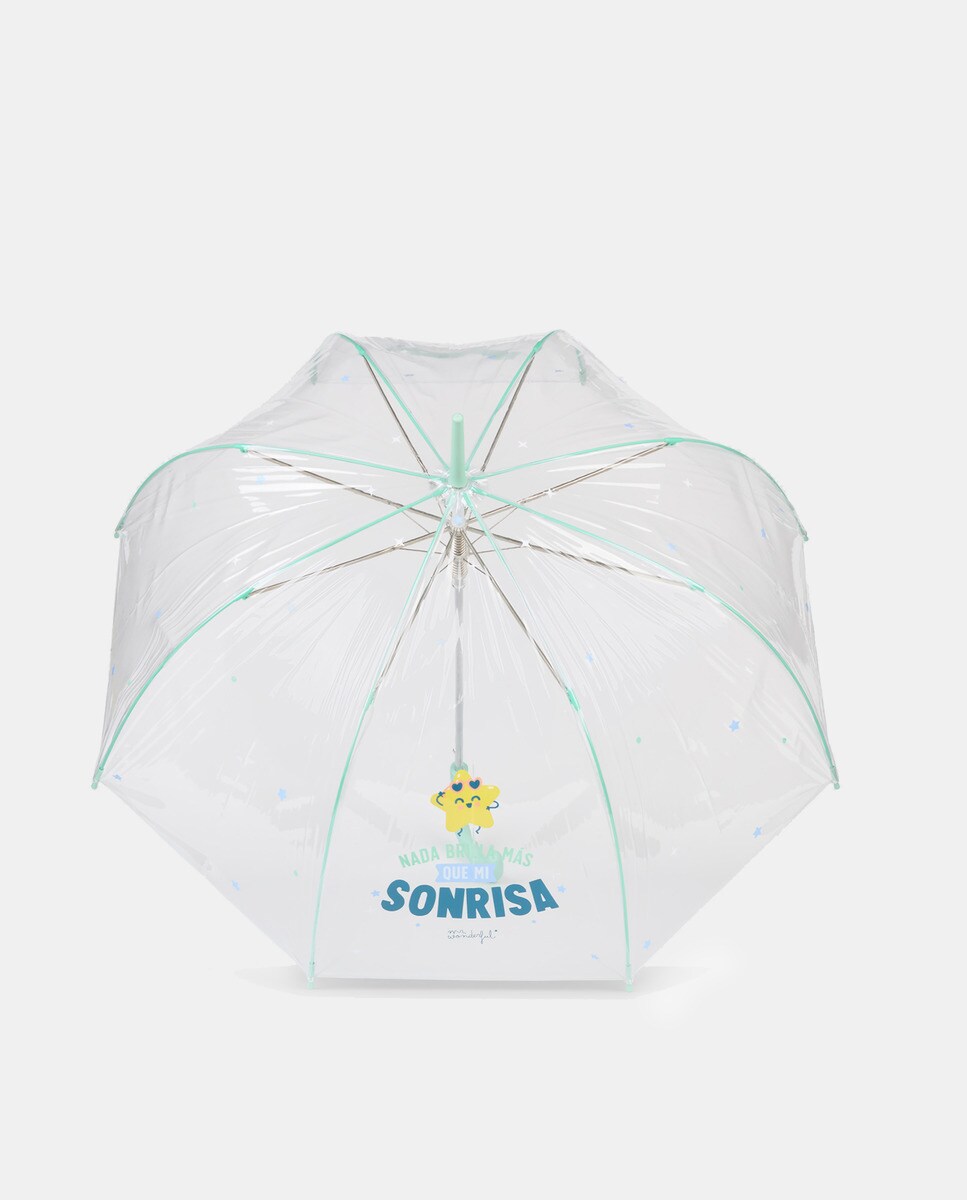 Guarda-Chuva Comprido Automático com Detalhes Verdes - Transparente
