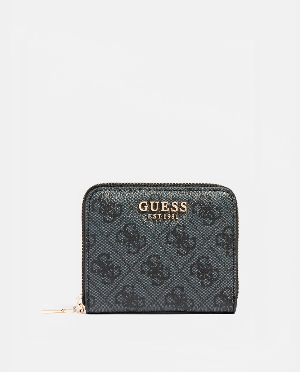 Carteira Pequena com Estampado do Logótipo e Fecho de Correr - Cinzento-Escuro