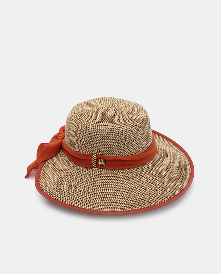 Chapéu Mesclado com Fita e Vivos a Condizer - Castanho