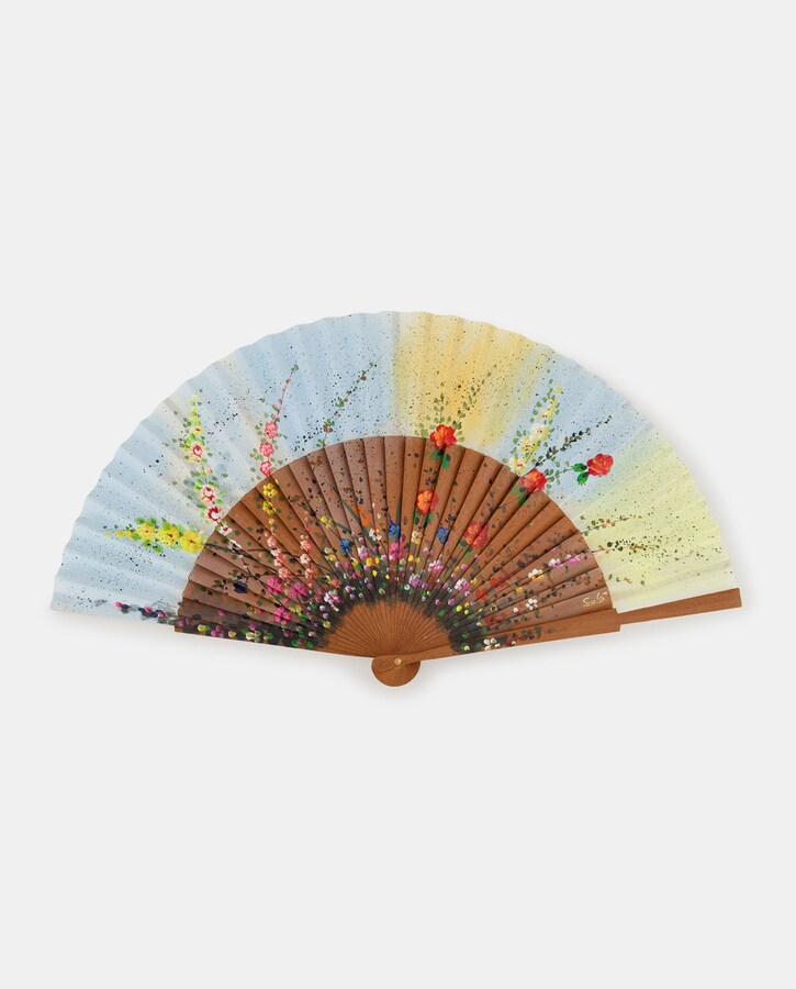 Leque com Flores Pintadas à Mão e em Madeira - Multicolor