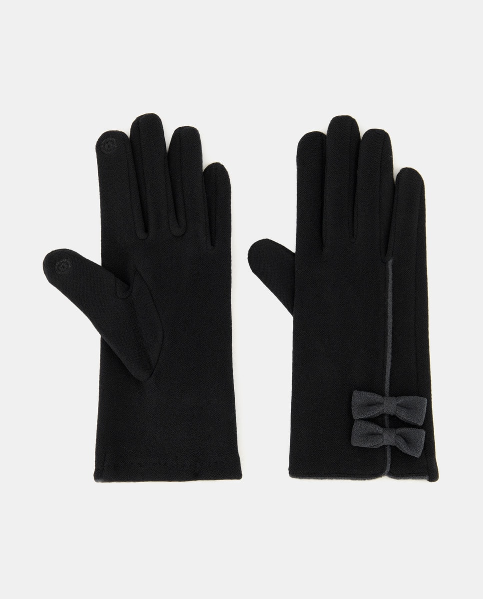 Luvas com Detalhes de Laço e em Tecido - Preto