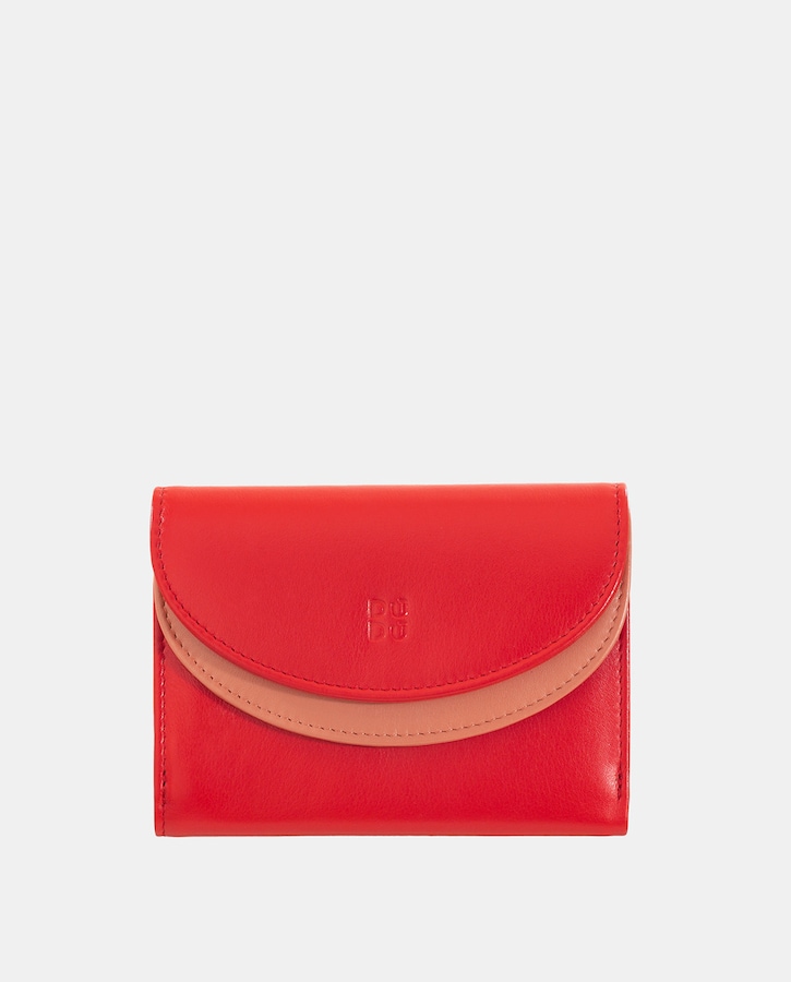 Carteira Média com Aba Dupla e em Pele de Bezerro Tipo Napa - Vermelho