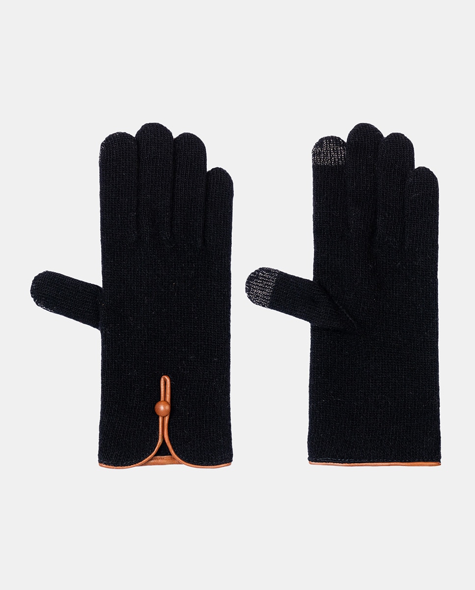 Luvas Tácteis de Malha com Vivos e Botão em Contraste - Bege