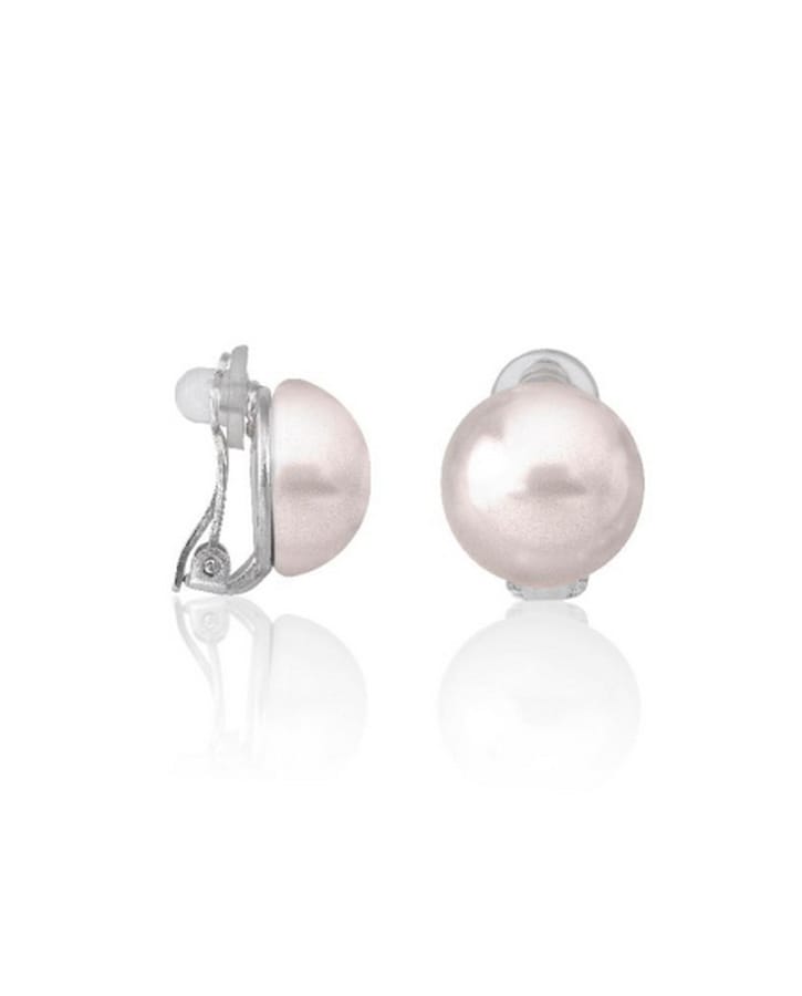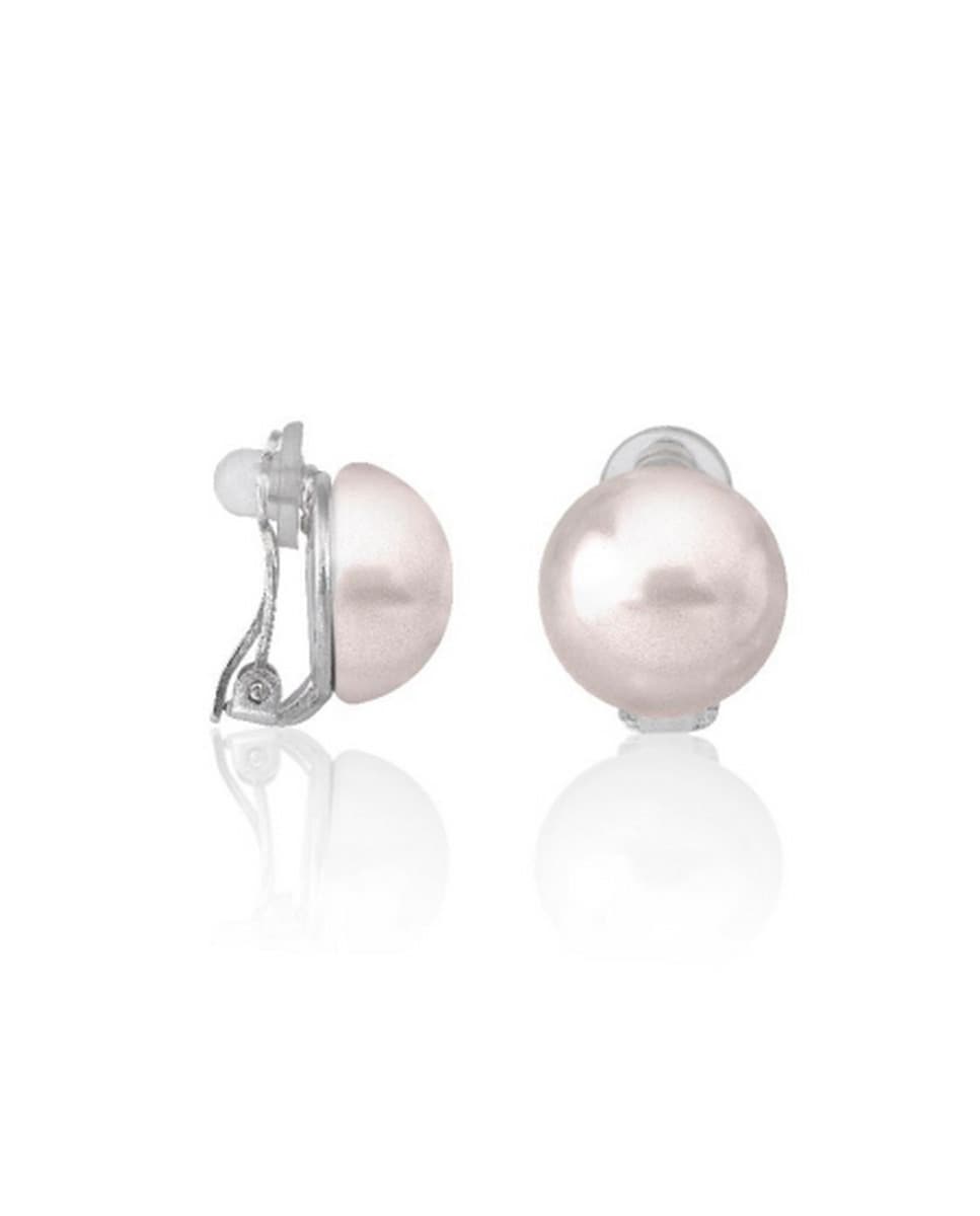 Brincos de bola em prata de lei com banho de ródio pérolas rosa de 14 mm.