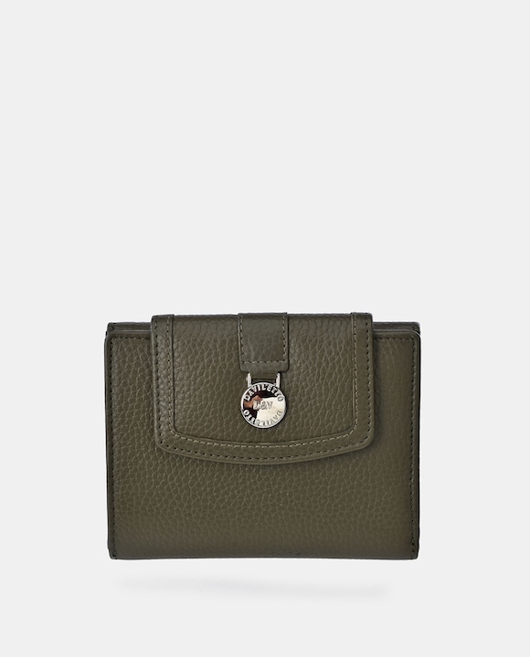 Carteira Pequena com Aba, Fecho Metálico e em Pele - Verde