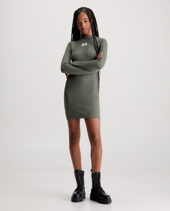 Vestido Canelado Slim com Manga Comprida