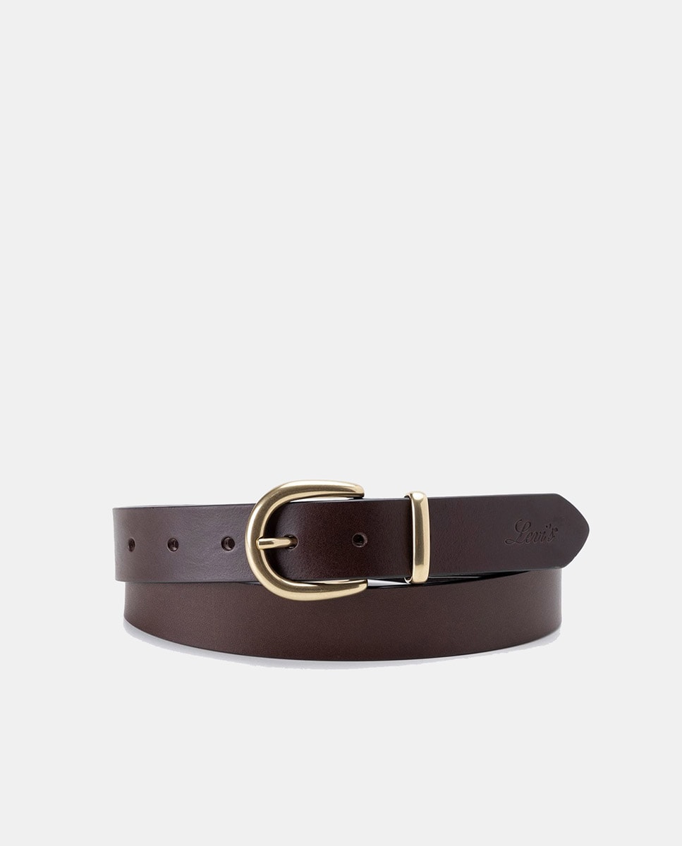 Cinto em Pele com Fivela Dourada Modelo Women's Phoebe - Castanho