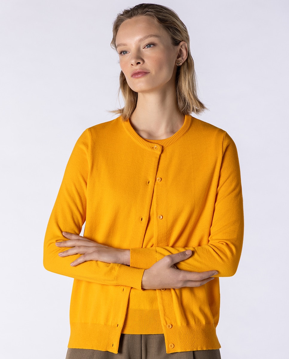 Casaco de Ponto Liso com Manga Comprida e Decote Redondo