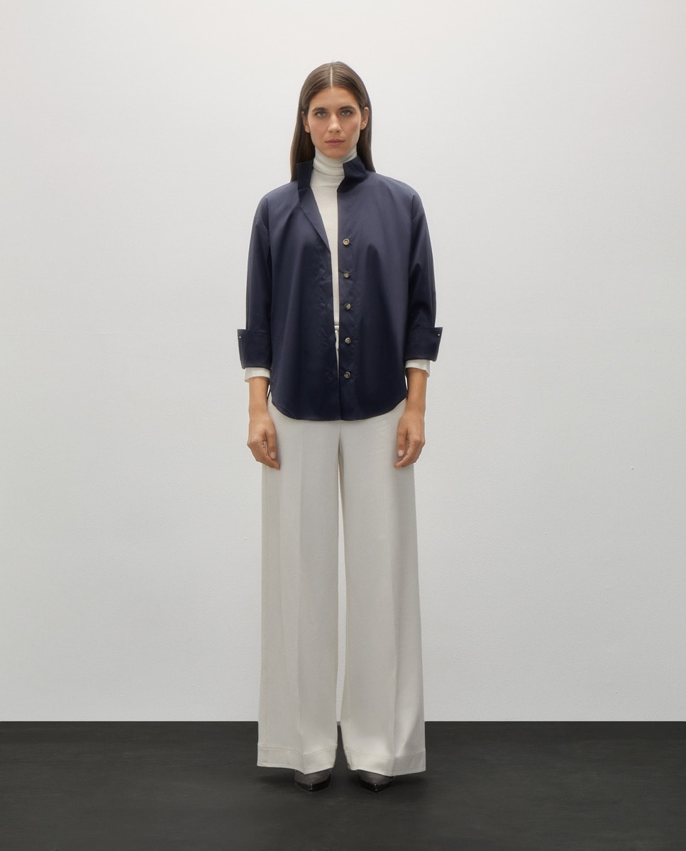 Camisa Lisa de Popelina com Manga Comprida e Botões à Frente