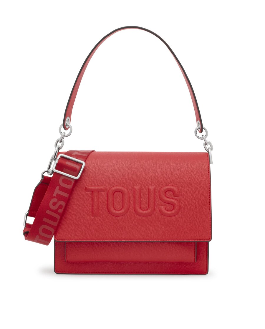 Mala de ombro ou bandoleira média Audree TOUS Brenda de poliuretano. Incorpora uma aba e fecho com dois botões magnéticos. Conta com dois compartimentos separados por um com fecho de correr e um bolso aberto na parte frontal. Alça de ombro fixa e alça bandoleira ajustável e destacável. Medidas (altura x largura x profundidade): 19 x 25 x 11,5 cm.