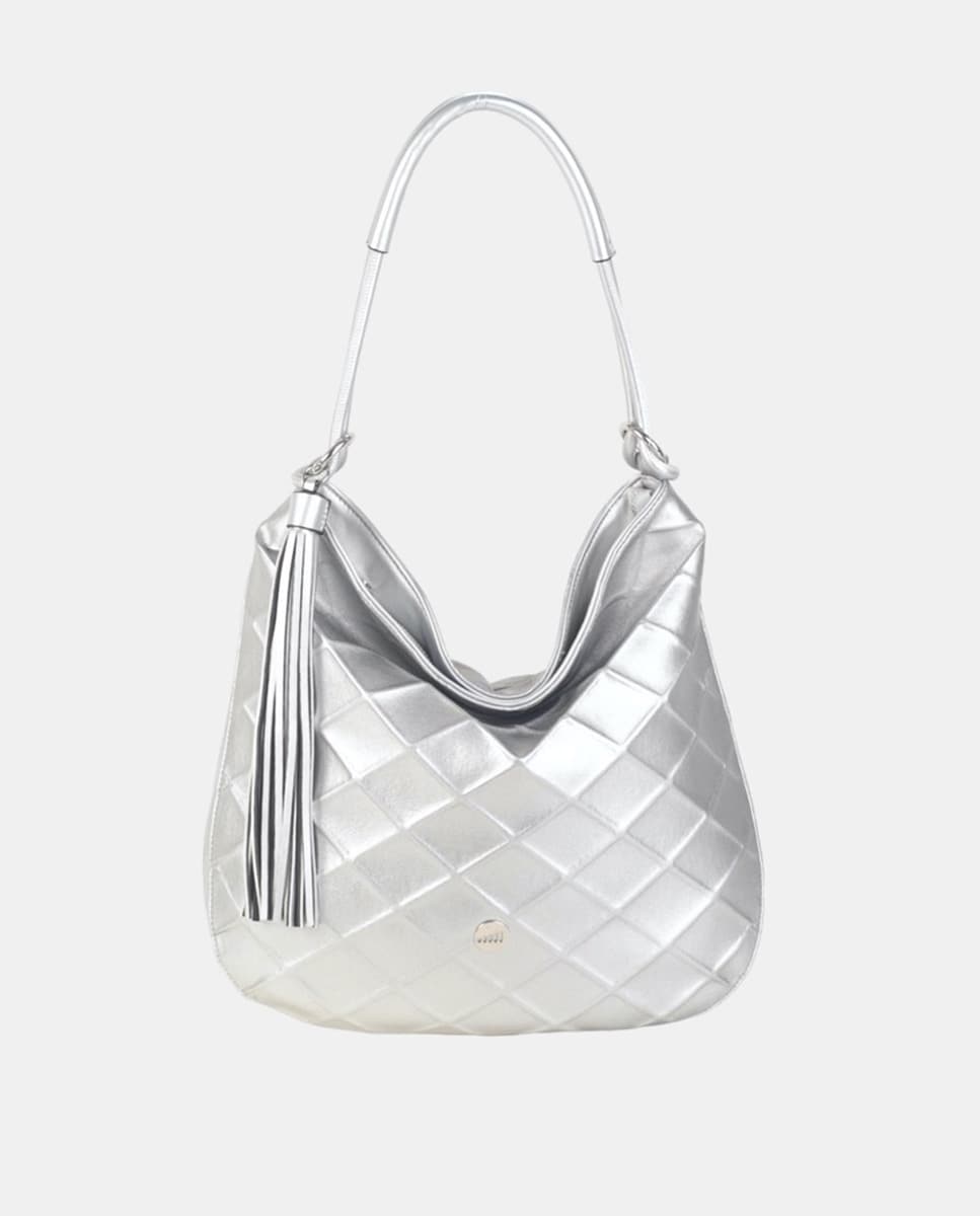Mala de Ombro de uma Alça Elaborada em PU com Textura e Lisa, Sempre a Condizer - Prateado