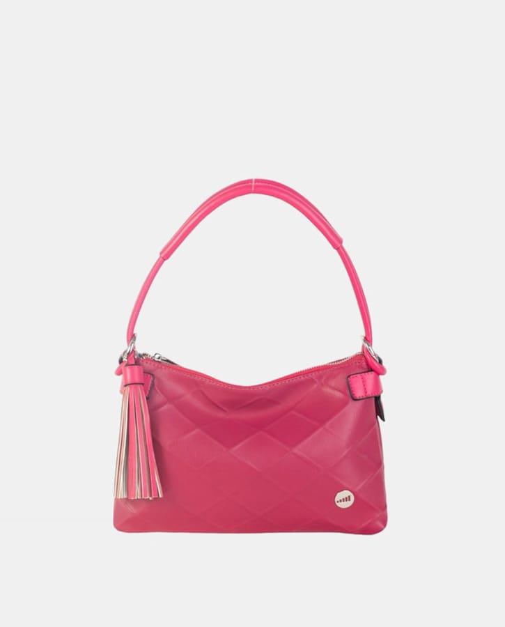 Mala de Ombro Pequena de uma Alça Elaborada em PU com Textura e Lisa, Sempre a Condizer - Fúcsia