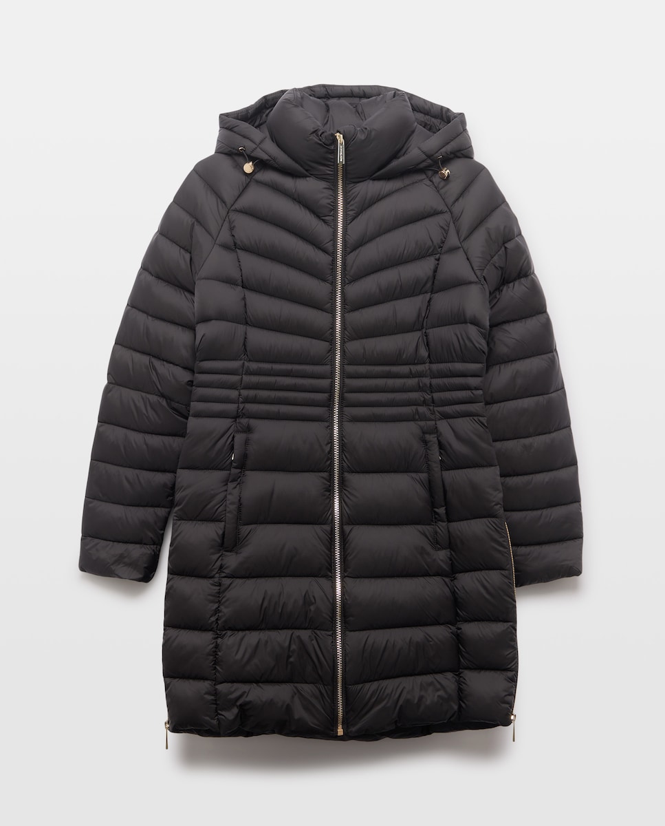 Blusão Acolchoado Comprido Fechado com Fecho de Correr