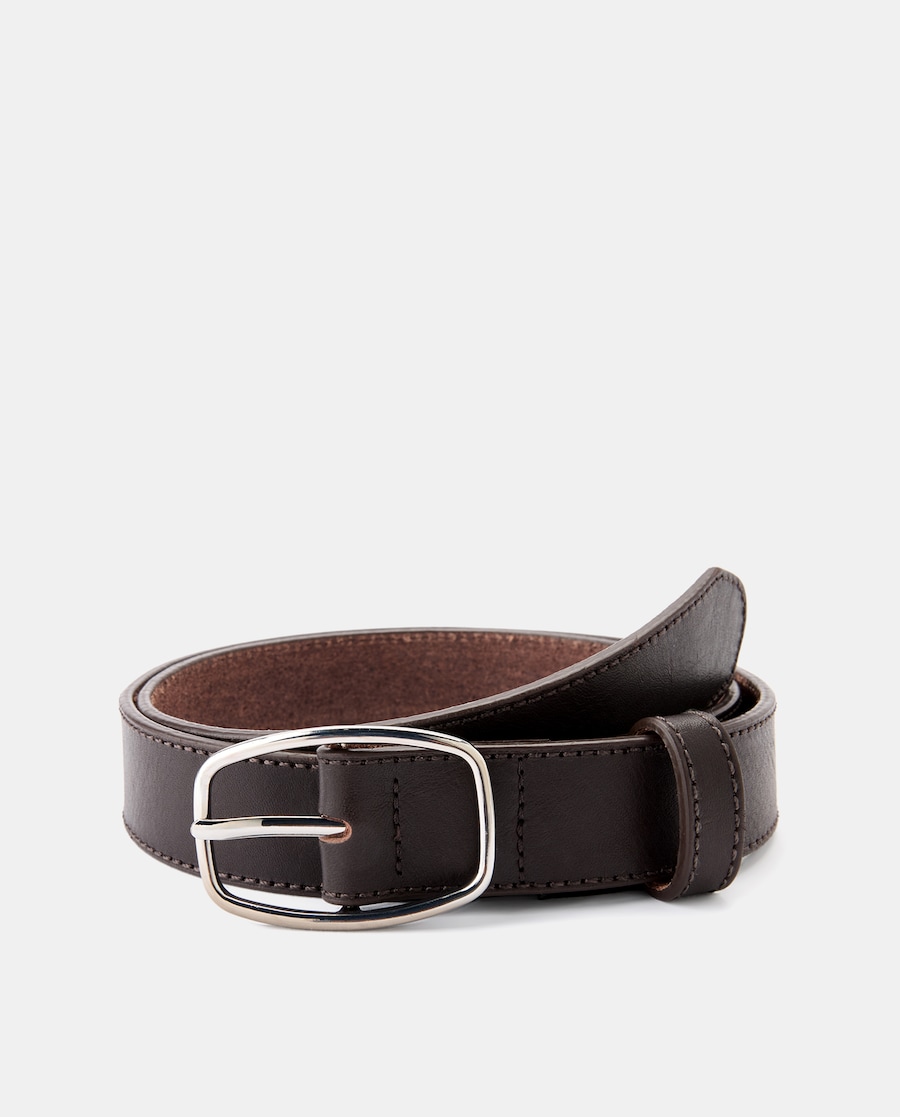 Cinto em Pele com Fivela Prateada