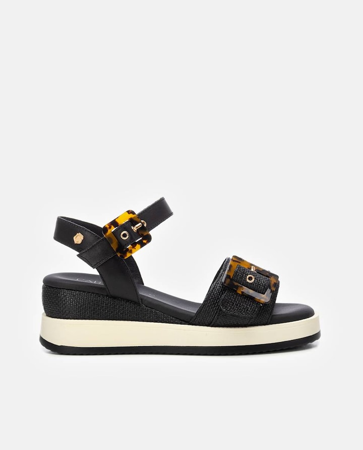 Sandálias com Cunha em Pele com Fecho de Fivela
