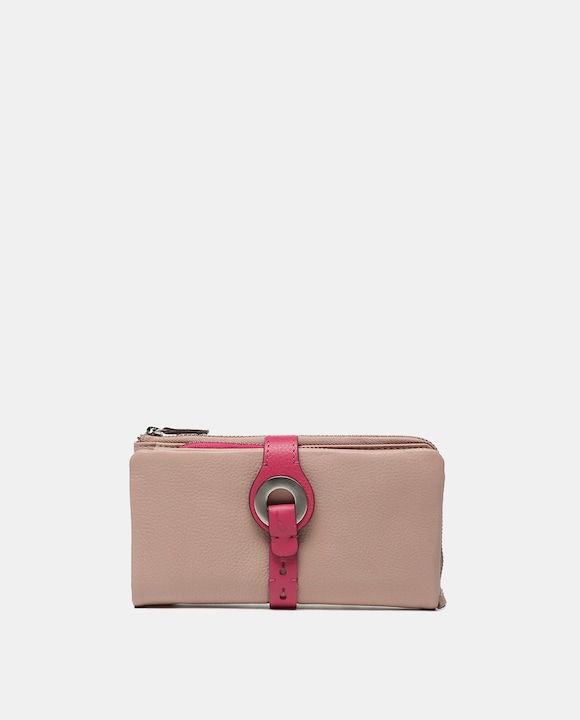 Carteira Grande Oceans Diary em Pele com Fecho Metálico - Rosa