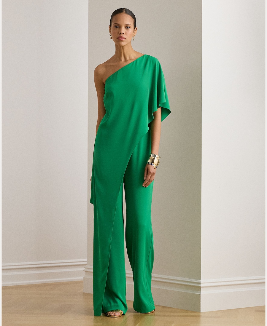 Macacão de Georgette Assimétrico com Capa