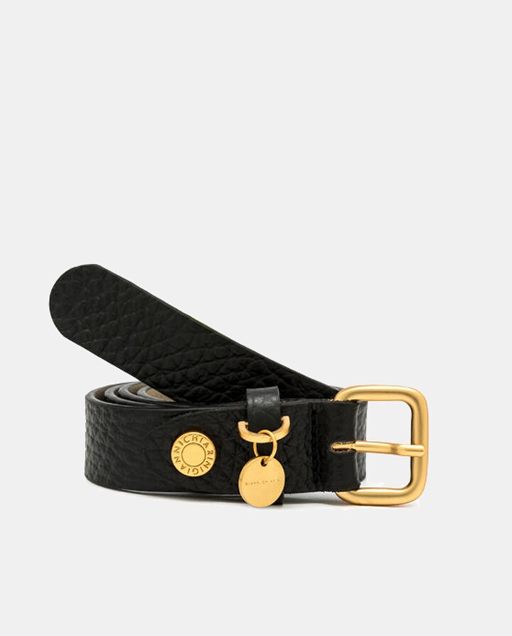 Cinto em Pele com Textura - Preto Conta e Rebite com Logótipo