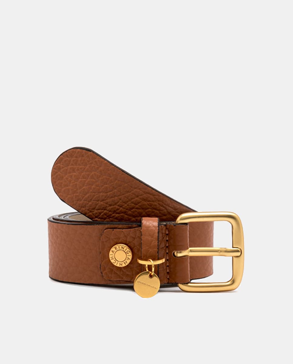 Cinto em Pele com Textura - Castanho Conta e Rebite com Logótipo