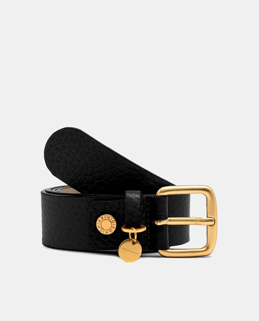 Cinto em Pele com Textura - Preto Conta e Rebite com Logótipo