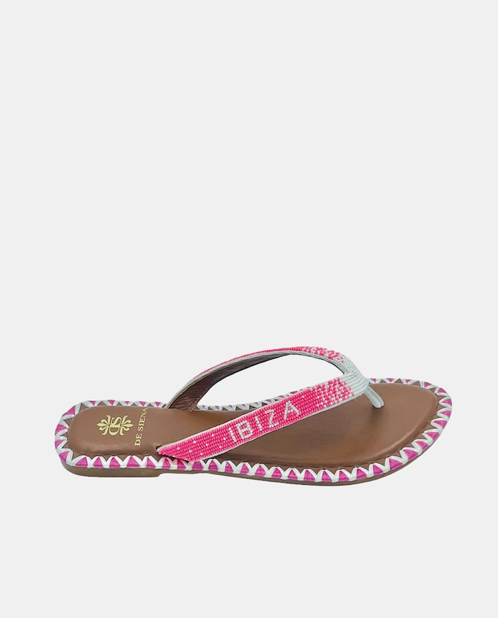 Sandálias Rasas de Dedo em Algodão com Atacadores de Missangas