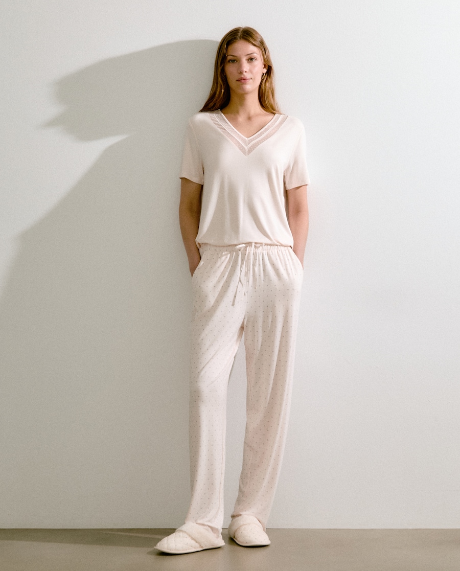 Calças Regular de Pijama às Bolinhas